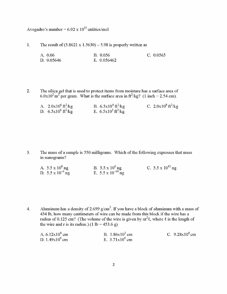[49+] Chem 1035 Placement Test, CHEM 106 Test #1 Study Guide And Notes | Course Hero